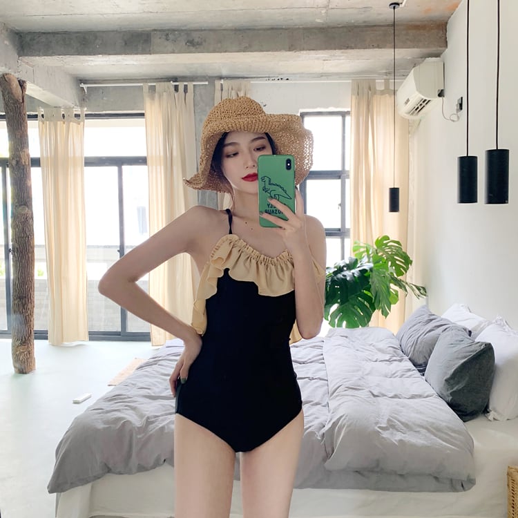 【予約】フリルバックレスワンピーススイムウェア black ( B135 水着 )