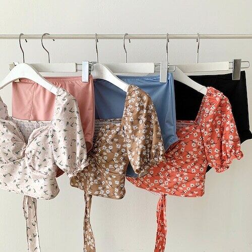 【一部即納】フラワーパフスリーブスイムウェア Pink ( B295 水着 )