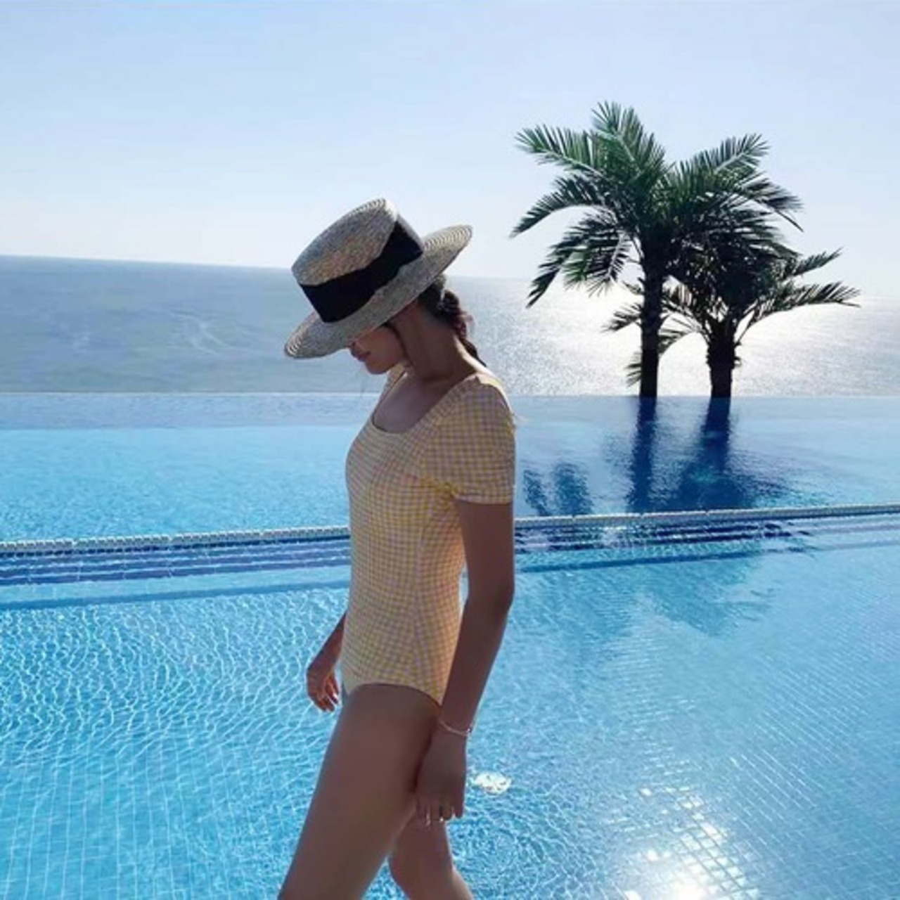 チェックハーフスリーブスイムウェア yellow ( B353 水着 )